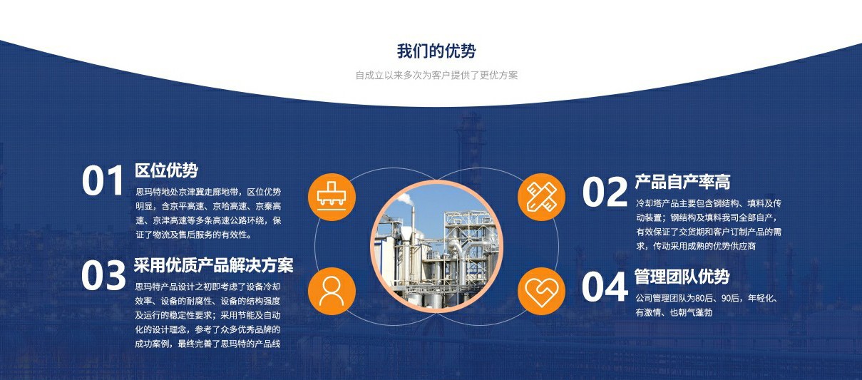我們賦予了公司Smart(17.c1起草视频(tè))的品牌名(míng)稱,意在作為冷卻(què)塔設(shè)備生產廠家,可以(yǐ)生產出(chū)智能(néng)化、高(gāo)效率的蒸發式製(zhì)冷設備產品(pǐn)並時刻根(gēn)據市場的變化推出更(gèng)具優勢的產品服務於廣大客戶。