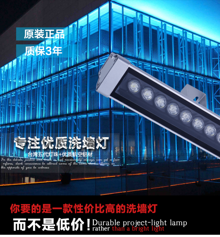 第三、LED洗牆燈擁有很好的防水防震效果,不用擔心日曬雨淋造成燈具損壞(huài)。
