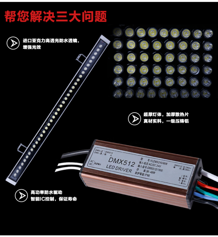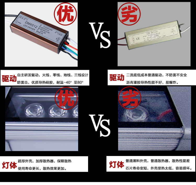 先看配置,配置影響產品的質量,一般問燈珠與電源,好的燈珠搭配好的電源能讓LED洗(xǐ)牆燈長時間(jiān)地穩定運行。