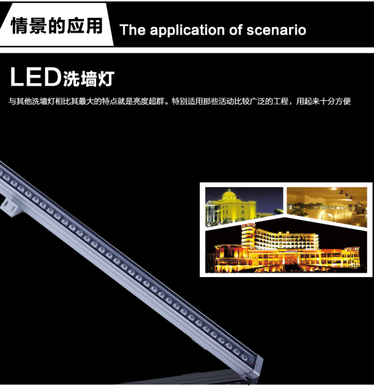 第五、LED洗牆燈安裝非常方便,省去了繁瑣的安裝步(bù)驟,節約了安裝成本。而且有利於更新維護。