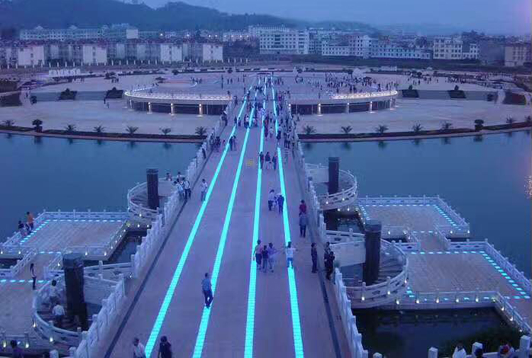 感應地(dì)磚燈采用三基色(R、G、B)組成,可顯示六萬多種顏色,播放幻彩和(hé)視頻效果均可實現。感應地磚燈控製方式獨特:用dmx512改進版Sdmx512控製方(fāng)式控製(zhì),打破dmx512控製方式控製(zhì)點數的缺點,克服RS-485通(tōng)訊的不足,是一款專為感應地磚燈研發的控製係統。